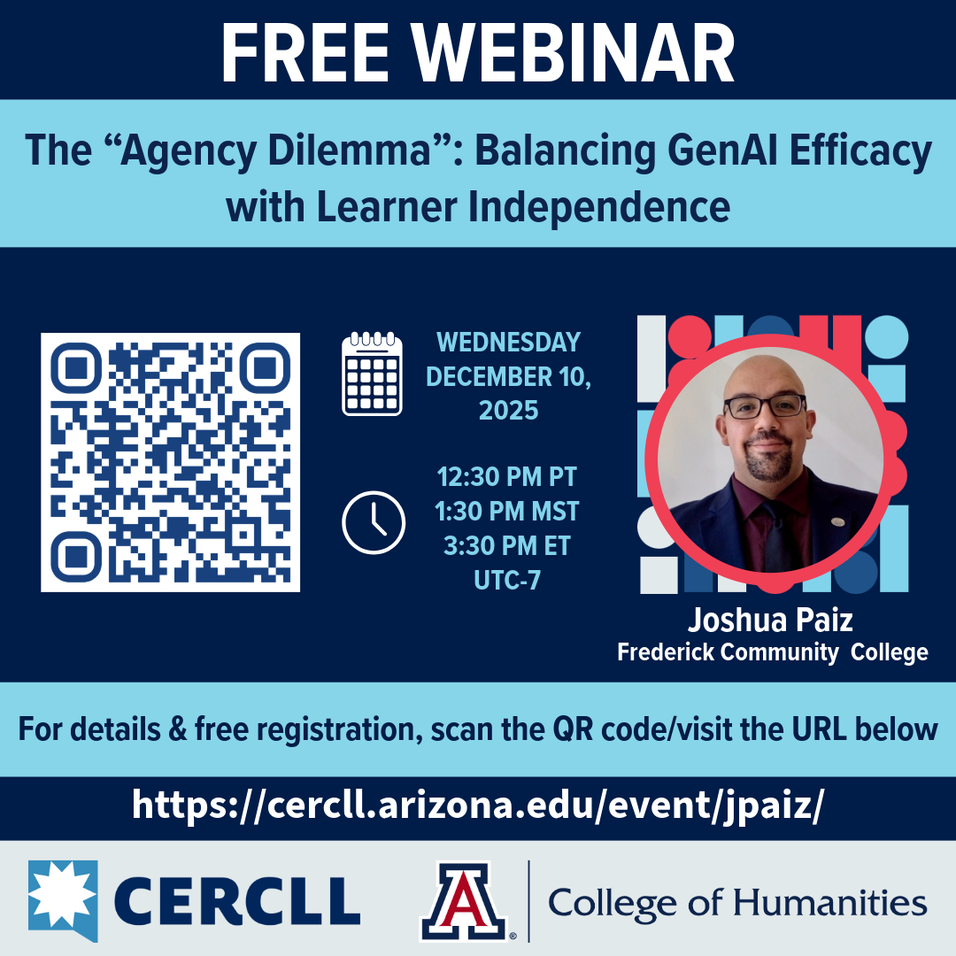 ➣ Full webinar details including abstract, presenter bio, and the link to register, are here: https://cercll.arizona.edu/event/jpaiz/